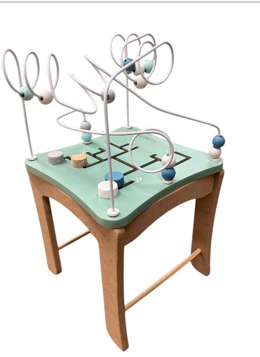 Diversión sin Límites, Aprendizaje Garantizado: Diseñada para bebés y niños/as a partir de los 9 meses, esta mesa es un universo de exploración. Con su fascinante laberinto de cuentas y un divertido buscacaminos, tu hijo/a desarrollará la curiosidad y la coordinación ojo-mano mientras juega.