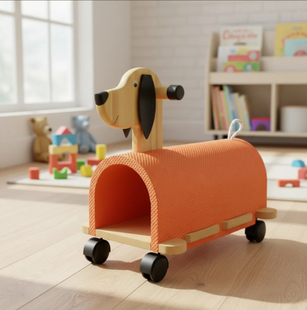 ESPECIFICACIONES: · MULTIMATERIAL: · Multilaminado de madera · Goma EVA de alta densidad · Orejas de ecocuero · Cola de soga · Agilidad: Ruedas giratorias independientes 360 grados · Seguridad: Bordes redondeados y goma EVA antigolpes · Fácil montaje · Altura no ajustable · Diseñado para uso en interiores +