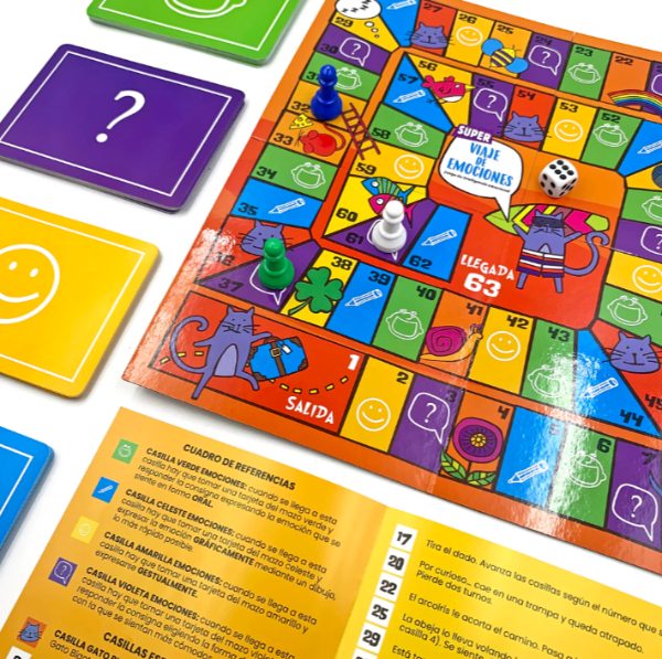 Súper Viaje de Emociones es un juego de inteligencia emocional pensado para que niños y niñas puedan identificar, expresar y compartir lo que sienten de una forma divertida y libre de juicios. Mediante situaciones cotidianas, expresiones orales, gráficas y corporales, los jugadores conectan con sus emociones y aprenden a comunicar lo que les pasa.