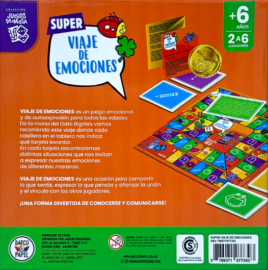 ¿Estás listo para un recorrido lleno de aventuras emocionales? Acompañá al Gato Bigotes en este juego de tablero donde expresar lo que sentimos es la clave para avanzar. Una propuesta lúdica y poderosa para fortalecer el vínculo, la empatía y el conocimiento de uno mismo y de los demás.